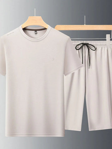 Men's Plus Size Round Neck Short Sleeve Top and Shorts Set